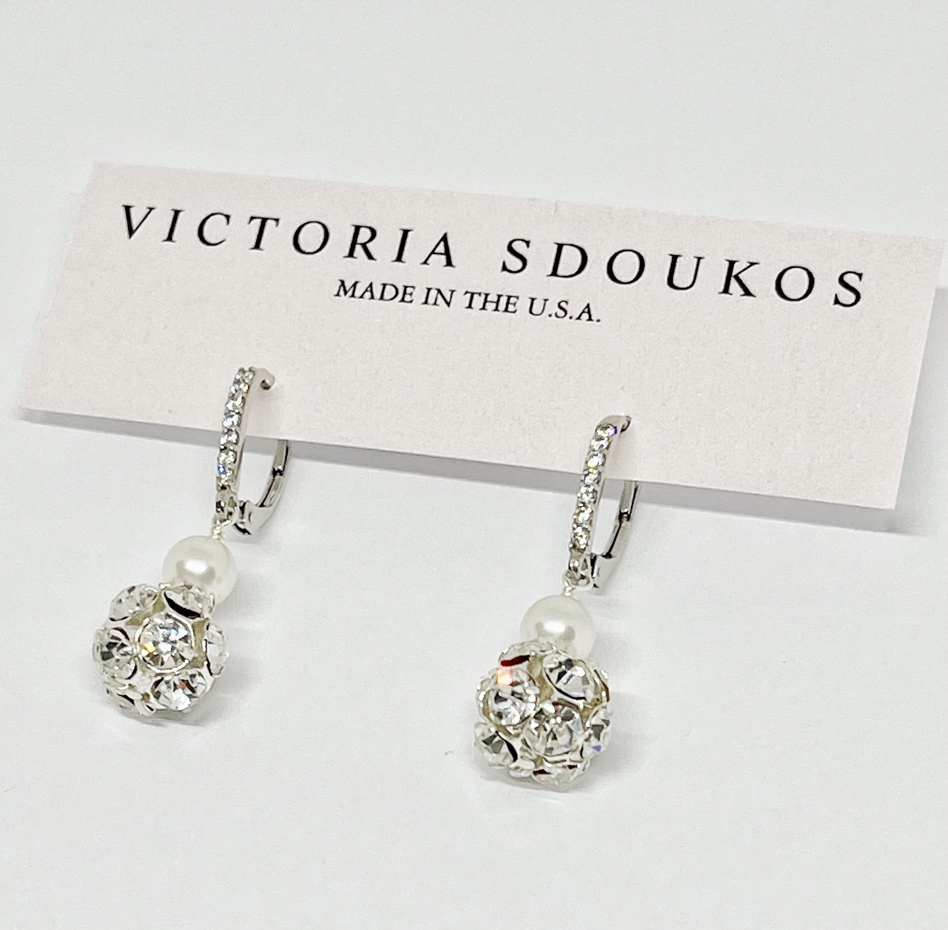 Materials: pavé cz lever back made with sterling silver, Austrian crystal pearls, sterling silver pavé rounds & sterling silver wiring