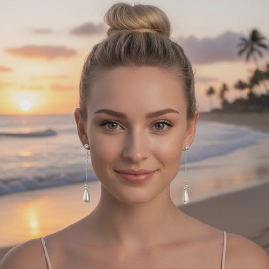 Delicate Austrian crystal pear shaped pearls, enhanced with beautiful pavé rounds are the perfect match for anyone looking for an elegant yet modern look.